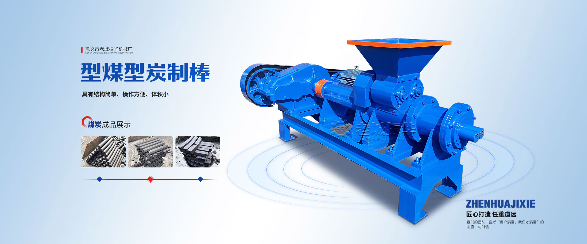 鞏義市老城振華機械廠建于1992年,相臨隴海鐵路與310國道,距連霍高速公路鞏義東出口只有2公里,地理位置優越,交通便利。我廠是一家生產型實體企業;是集科研開發,生產,銷售,服務于一體,專注于生產型炭和型煤系列產品的企業;連年得到用戶們的好評,被評為重合同守信用企業。